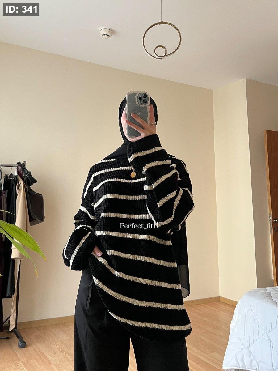 بلوزة صوف مقلمة اسود