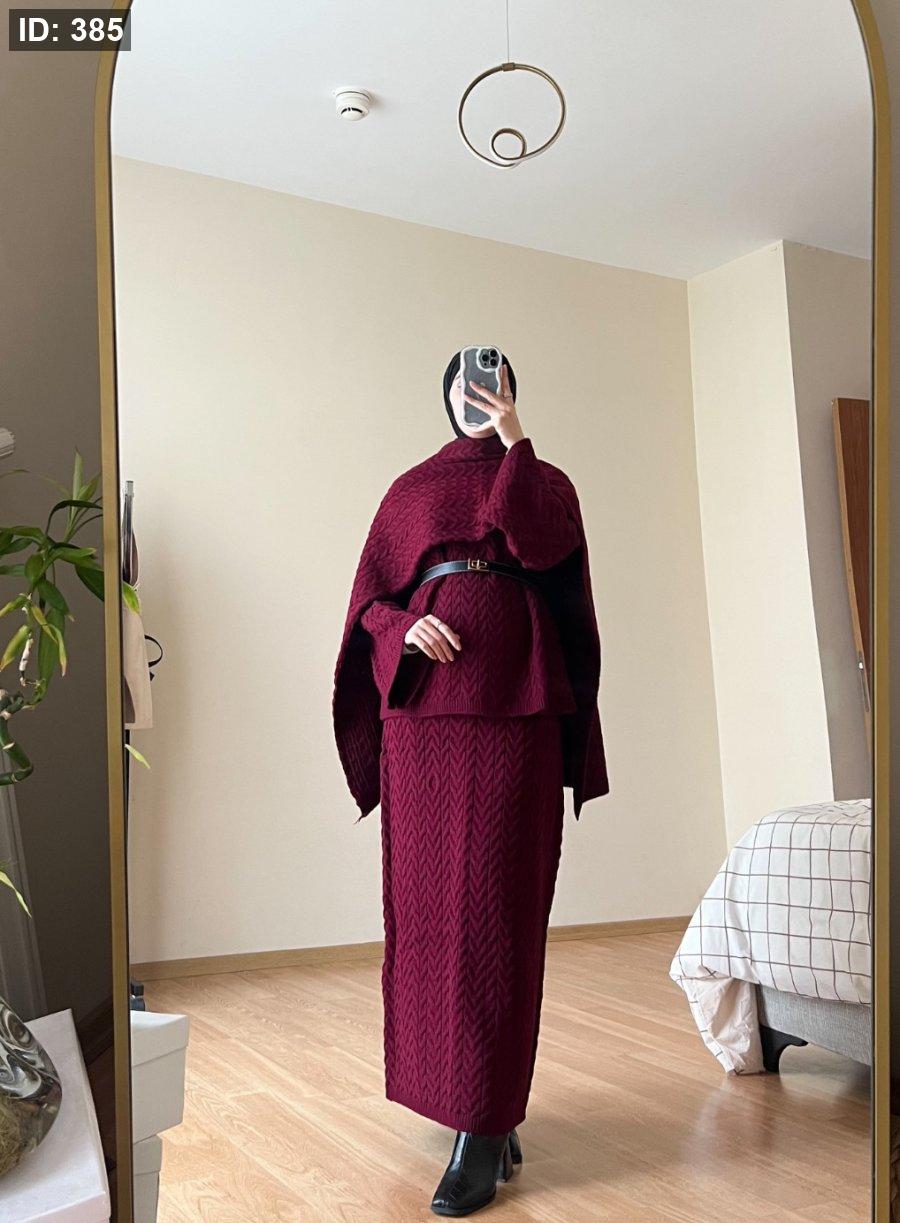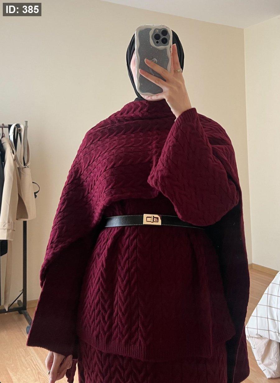 طقم صوف تنورة مع سكارف - بوردو