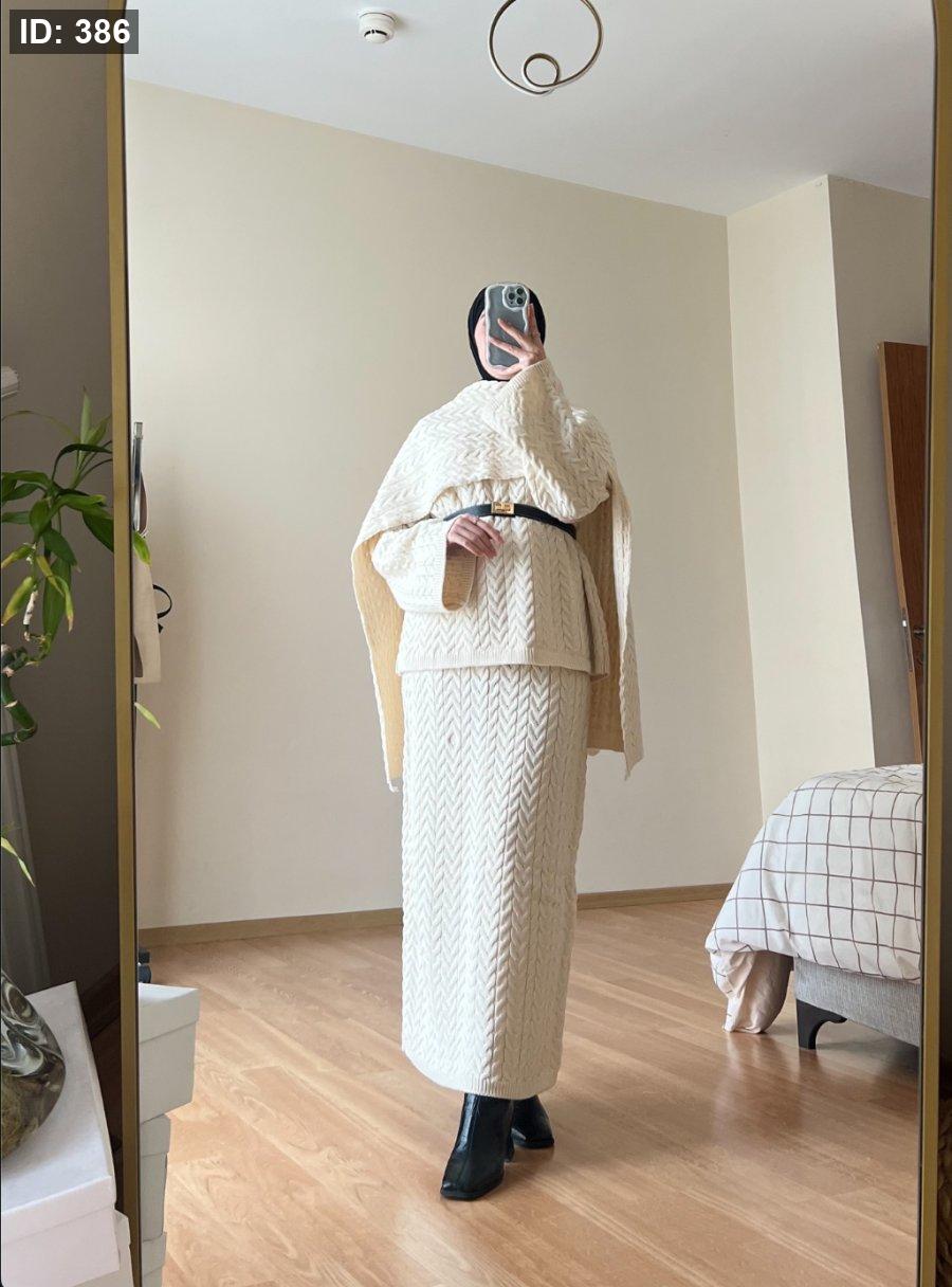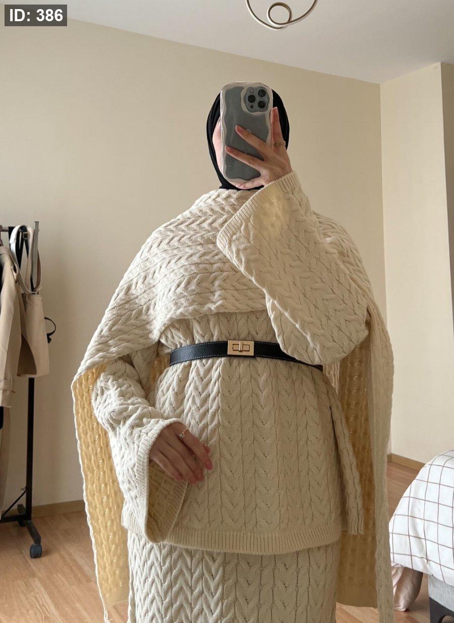 طقم صوف تنورة مع سكارف - سكري