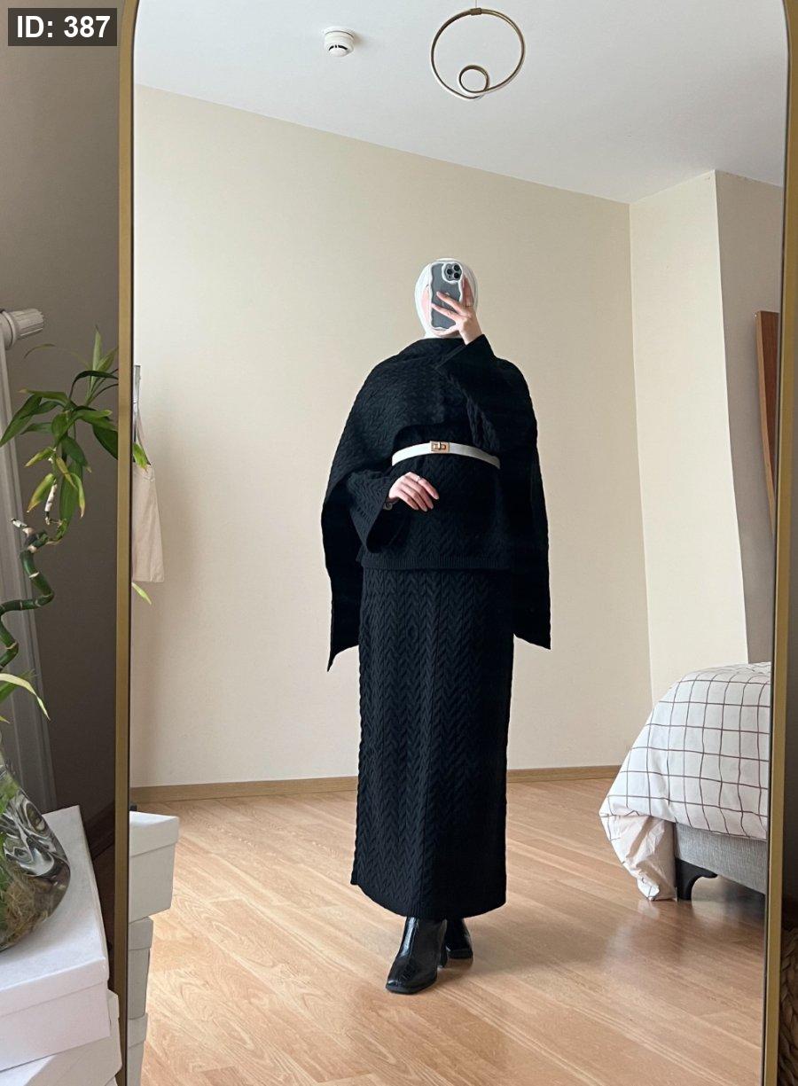 طقم صوف تنورة مع سكارف - اسود